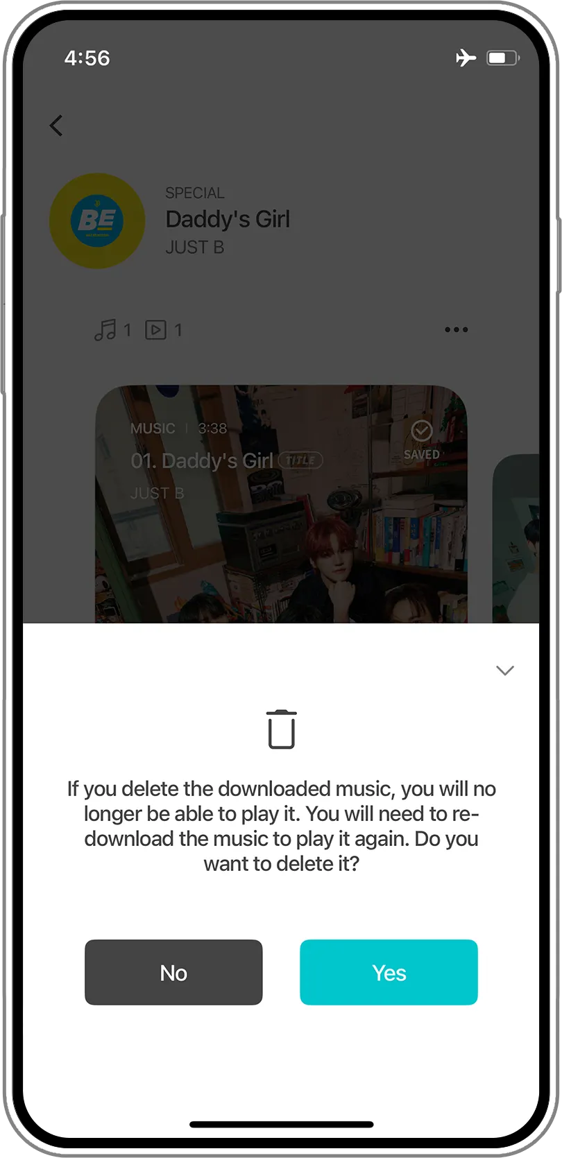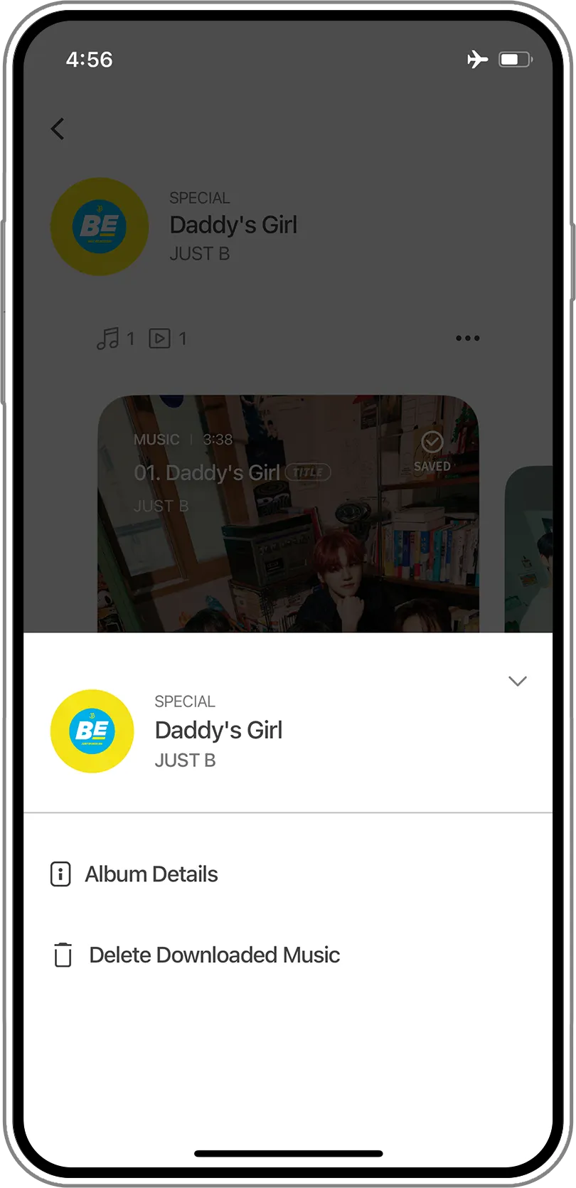 Jika tombol “SAVED” tidak diaktifkan di album yang sudah terdaftar, Anda dapat menggunakannya secara normal dengan mengklik tombol detail di album, mengklik tombol “Hapus sumber suara yang diunduh”, lalu menekan tombol putar lagi untuk mendownload albumnya.