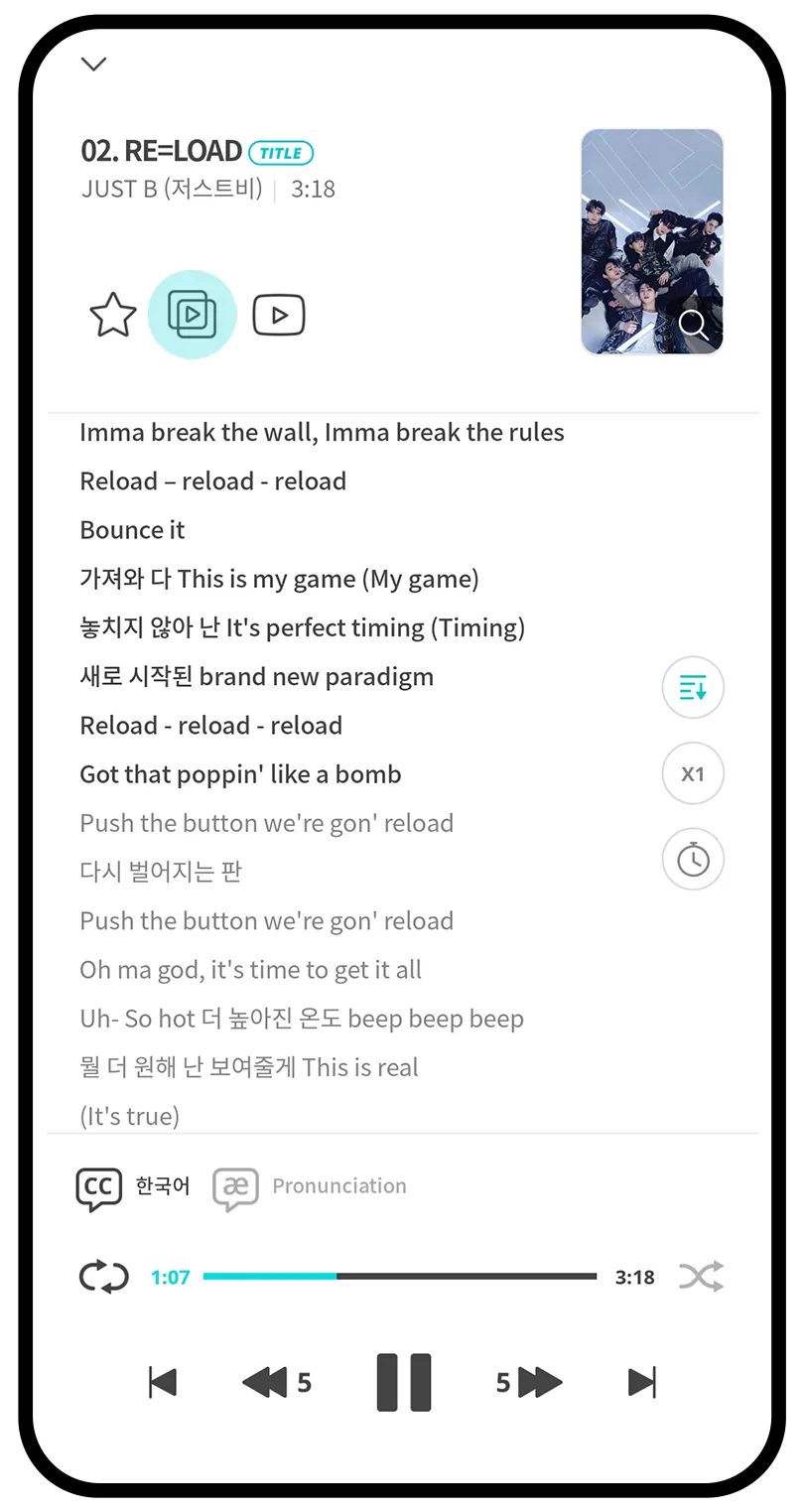 En appuyant sur le bouton, vous passez de l'écran de lecture existant au Mood Player.