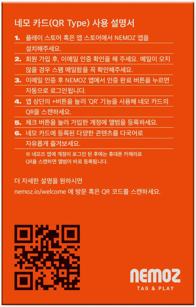 Apabila anda mengimbas kod QR pada kad Nemo dalam apl WAKEONE x NEMOZ, anda akan dibawa ke halaman pendaftaran album.