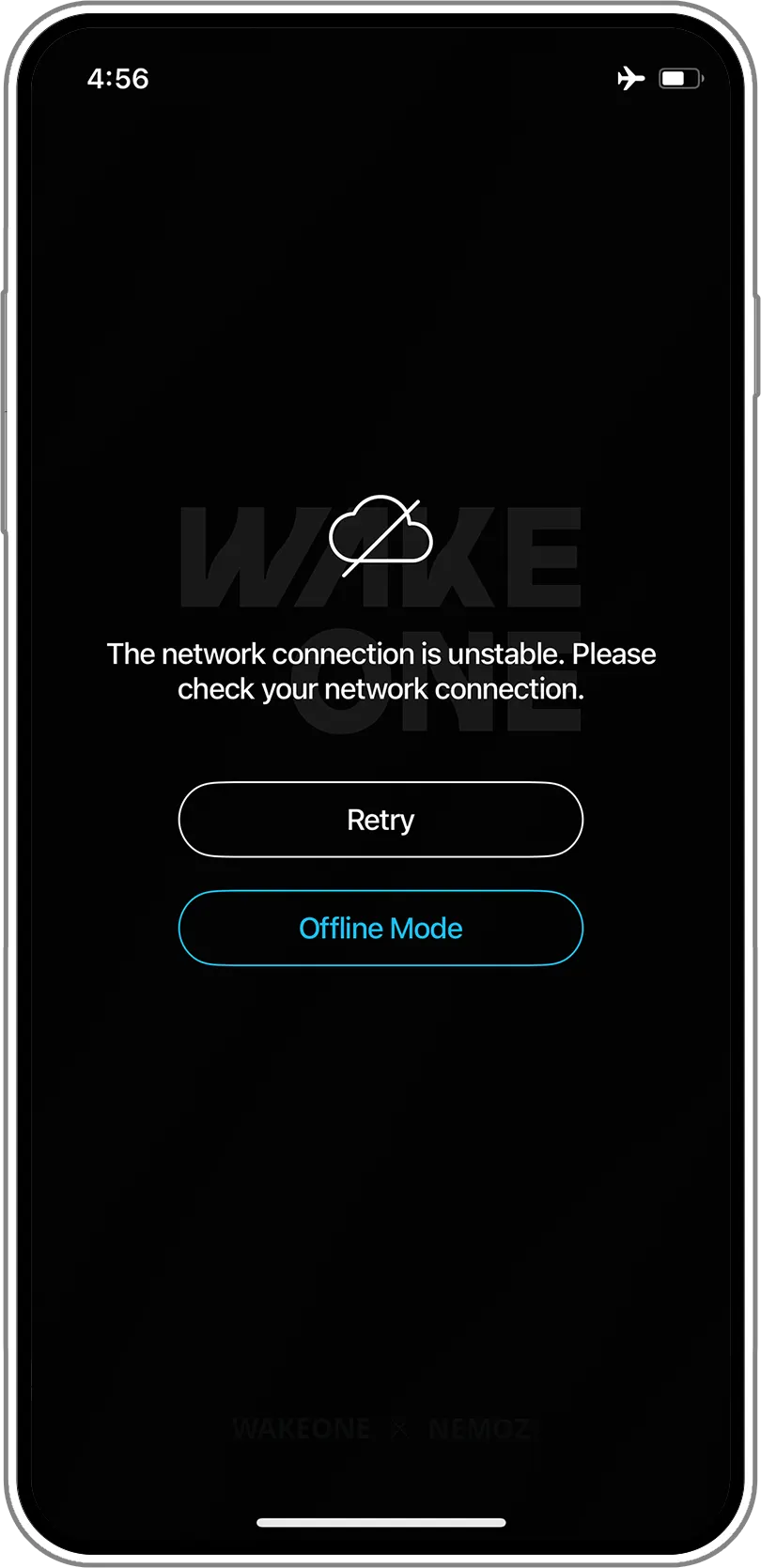Ative o modo avião ou desligue os dados do celular e depois abra o aplicativo WAKEONE x NEMOZ novamente.