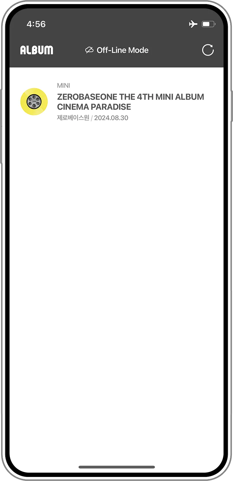 Você pode visualizar a lista simples dos álbuns disponíveis no modo offline. Toque no álbum que deseja reproduzir e aproveite a música!