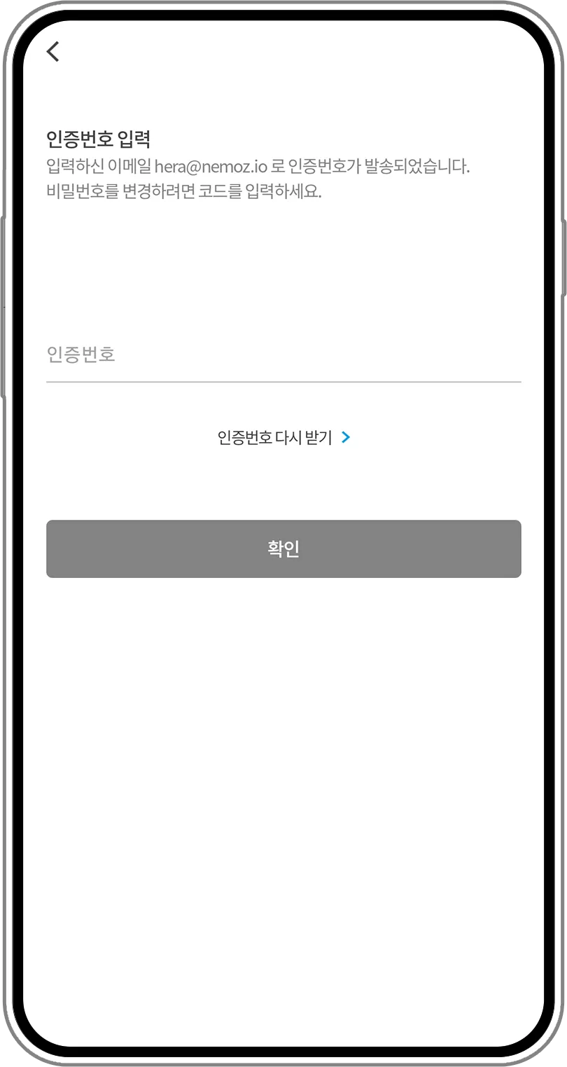 3. Hãy nhập mã xác thực đã nhận ở email vào ô nhập mã xác thực trên màn hình ứng dụng NEMOZ. Sau đó nhấn nút xác nhận ở bên dưới, trang đổi mật khẩu sẽ hiện ra. Lúc này, hãy nhập mật khẩu mới. Và bạn có thể đăng nhập tài khoản bằng mật khẩu mới.
